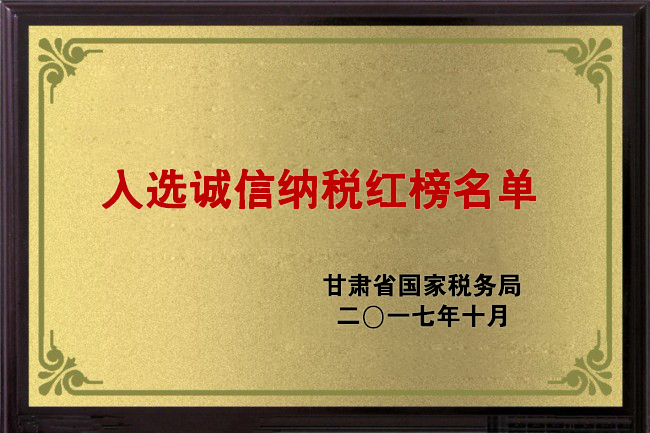 2017年10月,華安公司入選“甘肅省國家稅務(wù)局誠信納稅紅榜名單”。
