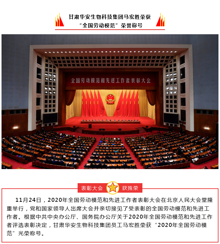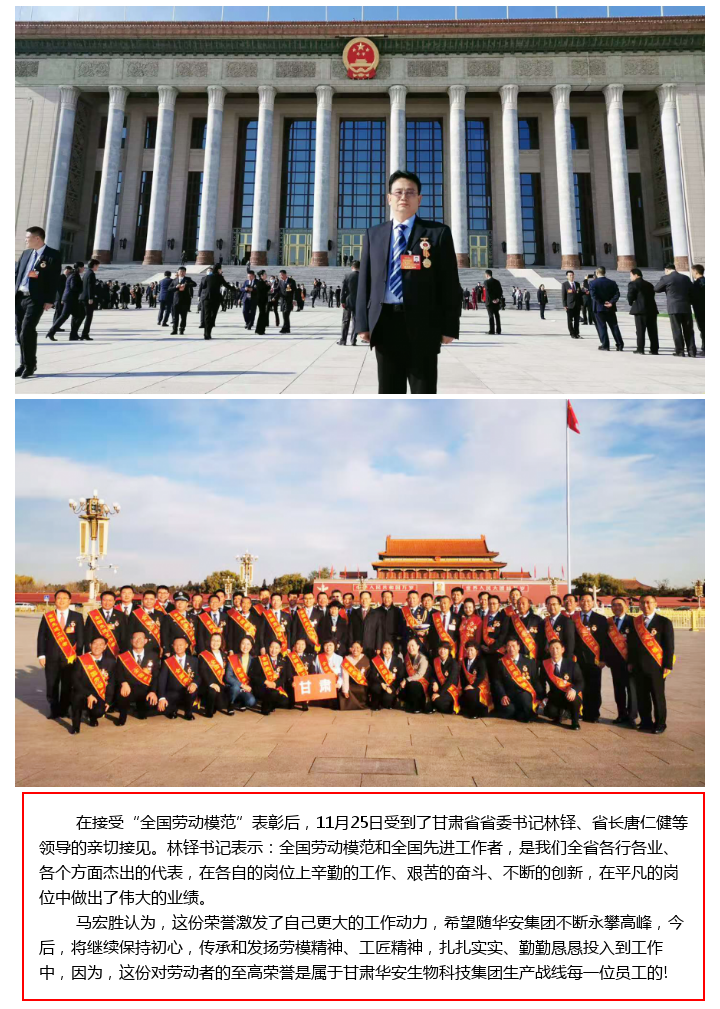 甘肅華安生物科技集團(tuán)馬宏勝榮獲 “全國(guó)勞動(dòng)模范”榮譽(yù)稱號(hào)