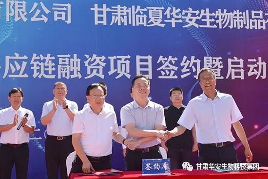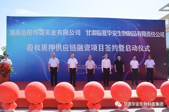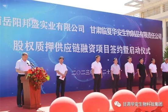 2023年7月22日上午,臨夏州華安生物制品有限責(zé)任公司同湖南岳陽(yáng)邦盛實(shí)業(yè)有限公司就共同推進(jìn)高精尖酪蛋白系列產(chǎn)業(yè)供應(yīng)鏈融資項(xiàng)目簽約啟動(dòng)儀式在臨夏經(jīng)濟(jì)開(kāi)發(fā)區(qū)華安公司廠區(qū)隆重舉行。
