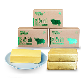 產(chǎn)品描述:黃油又叫乳脂、白脫油,是將牦牛乳中的稀奶油和脫脂乳分離后,使稀奶油成熟并攪拌而成,黃油與奶油的最大區(qū)別在于黃油的脂肪含量更高。優(yōu)質(zhì)黃油色澤淺黃,質(zhì)地均勻、細(xì)膩,切面無水分滲出,氣味芬芳。 從牦牛奶中提取的黃油,具有獨(dú)特的營養(yǎng)價值和食療作用。被稱為藏區(qū)的軟黃金,也是藏族人生活中必不可缺的貢品和美食。